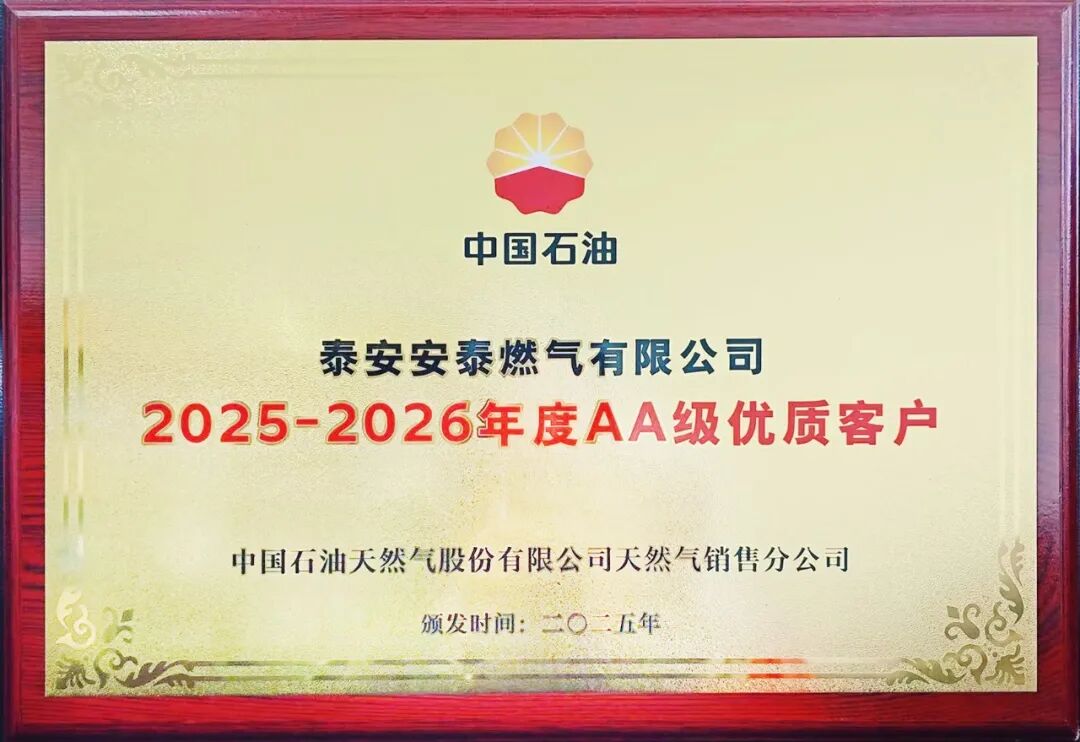近日,泰安安泰燃?xì)庥邢薰颈恢袊?guó)石油天然氣股份有限公司天然氣銷售分公司授予“2025—2026年度AA級(jí)優(yōu)質(zhì)客戶”榮譽(yù)稱號(hào)。該榮譽(yù)是中國(guó)石油對(duì)合作企業(yè)的高度認(rèn)可,更是對(duì)公司長(zhǎng)期以來深耕能源保障、恪守契約精神、積極履行社會(huì)責(zé)任的權(quán)威肯定。泰安安泰燃?xì)饽軌蛎摲f而出,關(guān)鍵在于...
