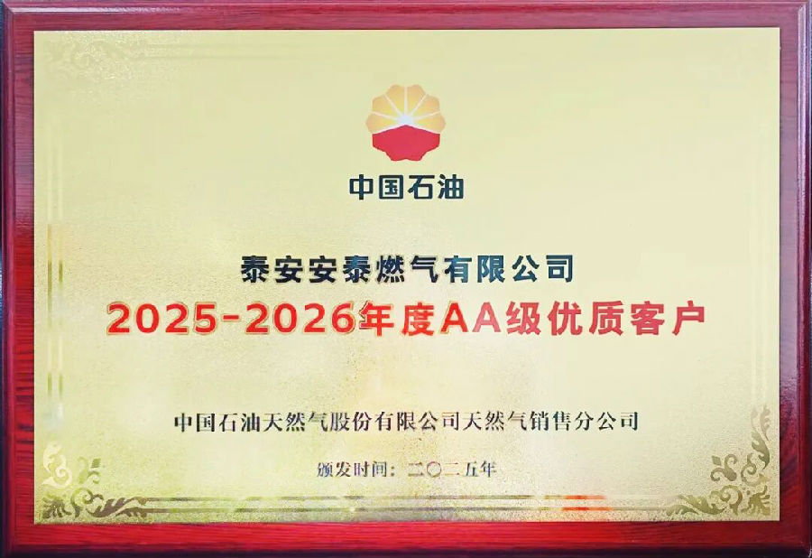 近日,泰安安泰燃?xì)庥邢薰颈恢袊?guó)石油天然氣股份有限公司天然氣銷售分公司授予“2025—2026年度AA級(jí)優(yōu)質(zhì)客戶”榮譽(yù)稱號(hào)。該榮譽(yù)是中國(guó)石油對(duì)合作企業(yè)的高度認(rèn)可,更是對(duì)公司長(zhǎng)期以來(lái)深耕能源保障、恪守契約精神、積極履行社會(huì)責(zé)任的權(quán)威肯定。